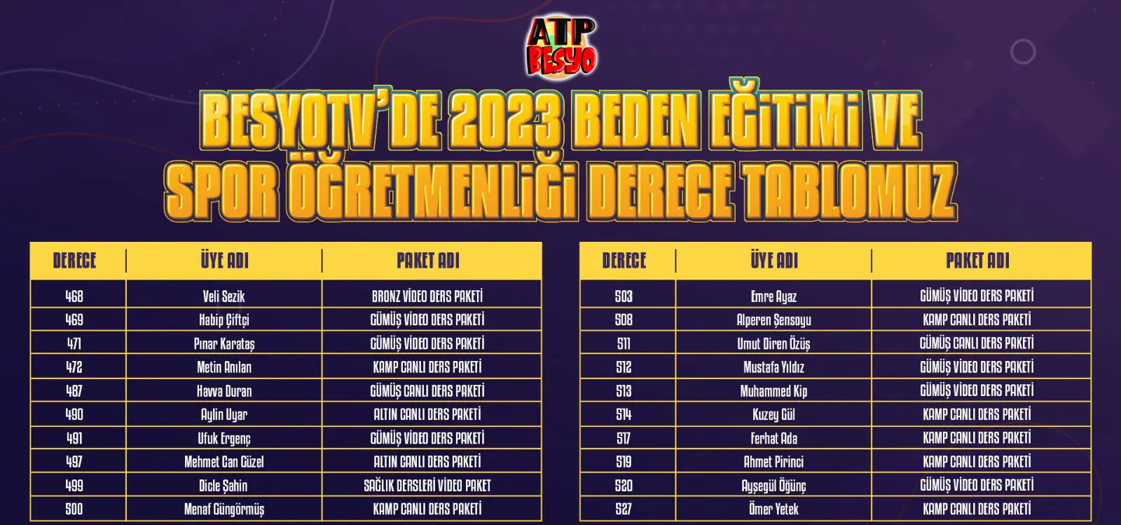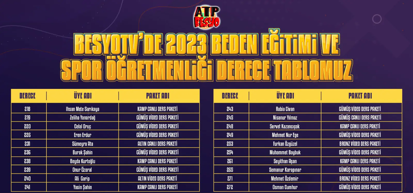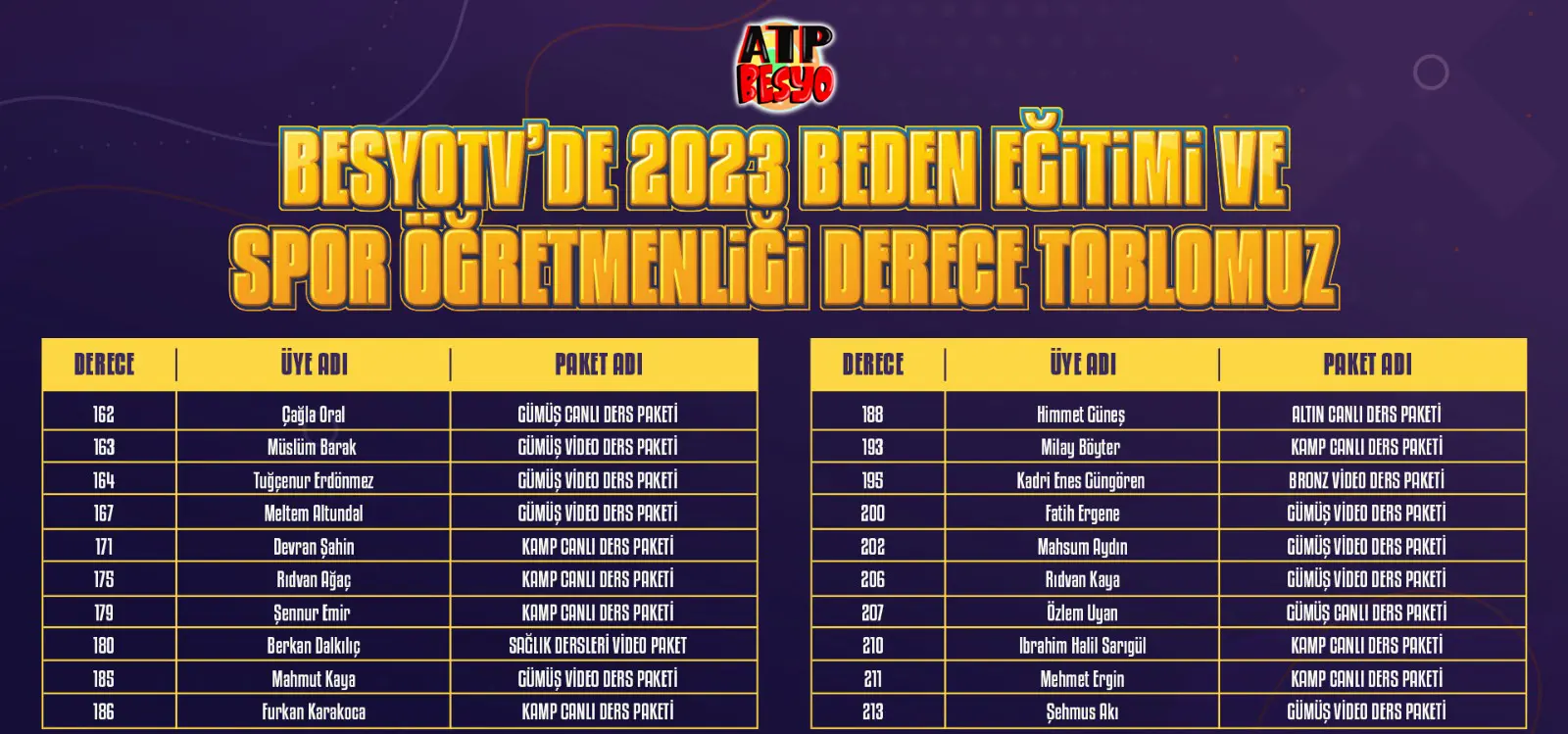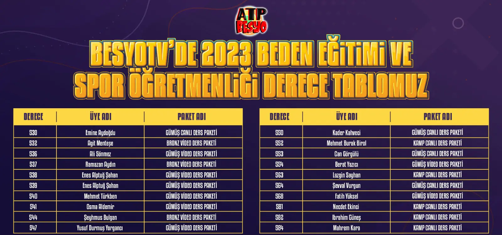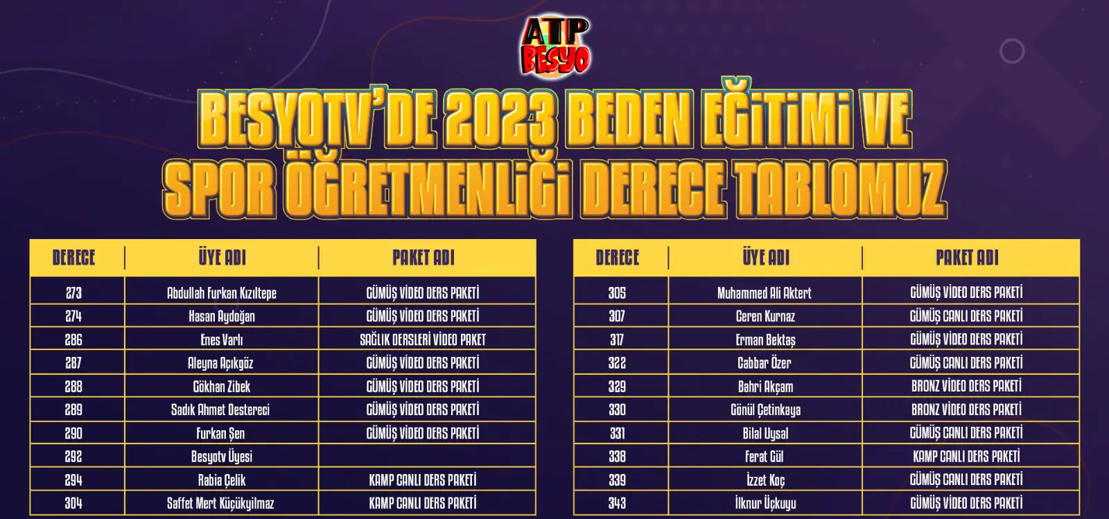 | 2024 | Türkiye 30. | ATP Besyo Üyesi̇ |