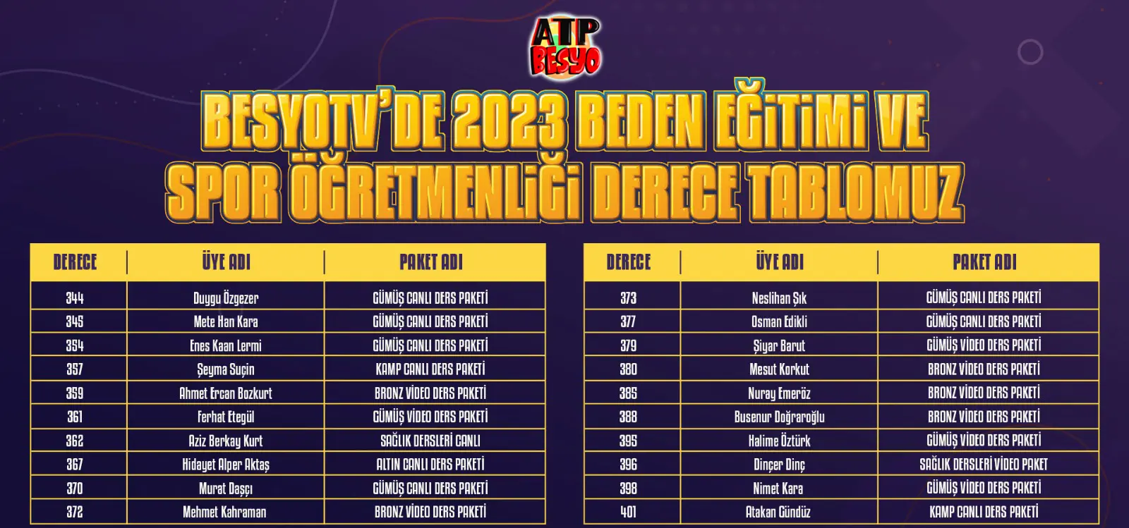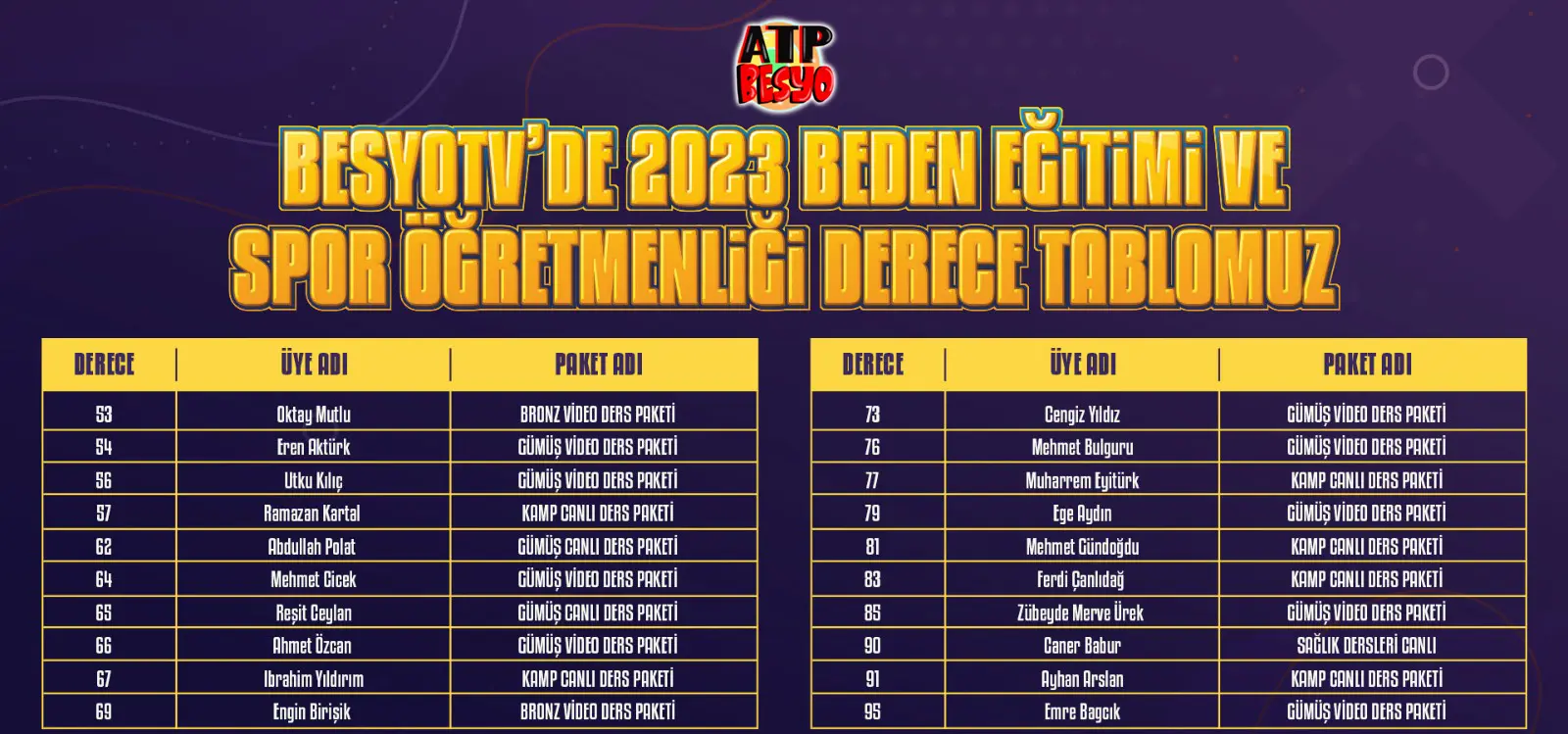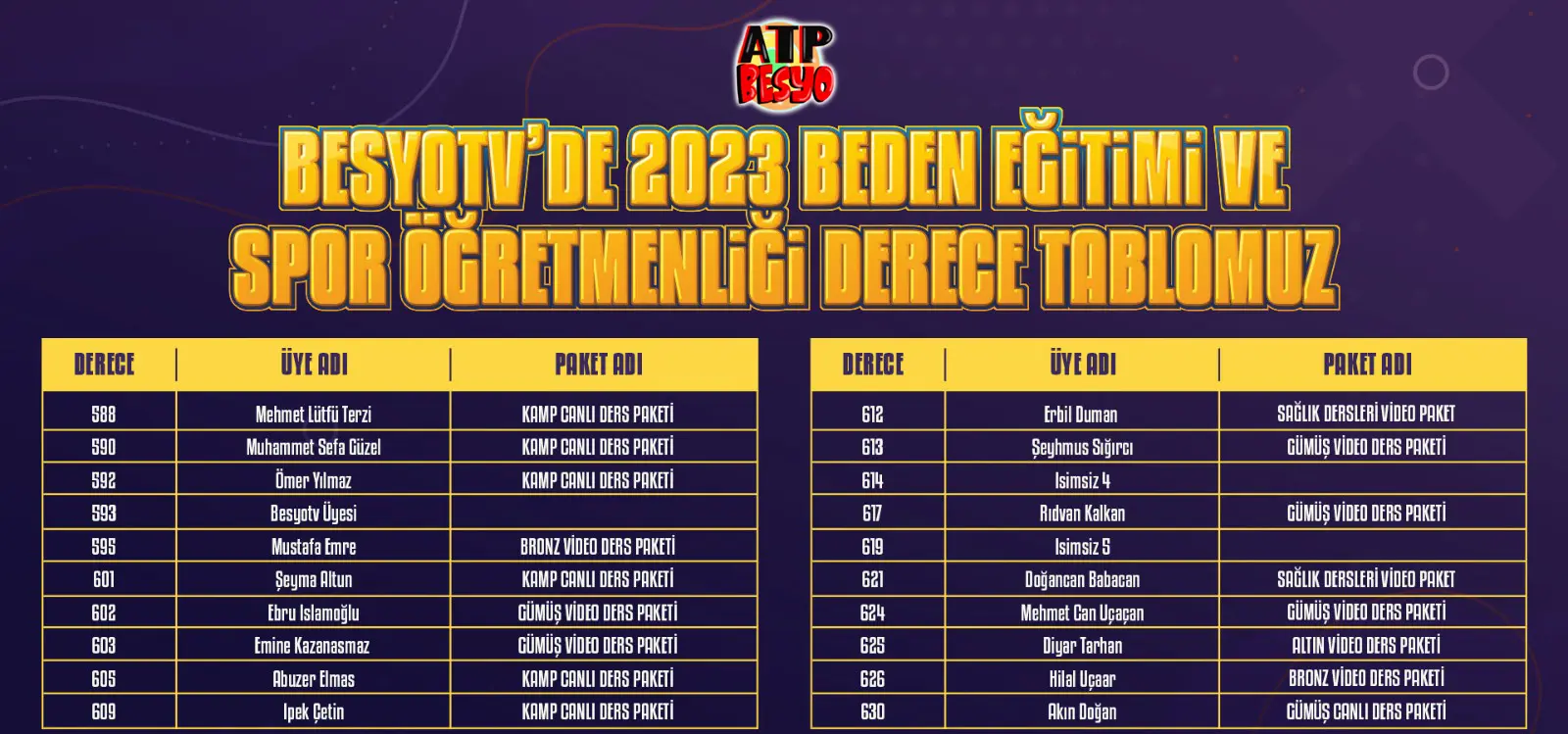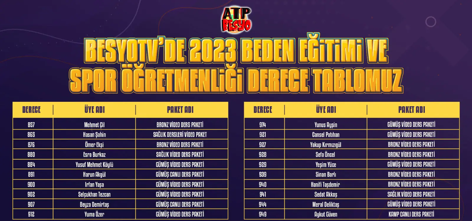 | 2024 | Türkiye 30. | ATP Besyo Üyesi̇ |