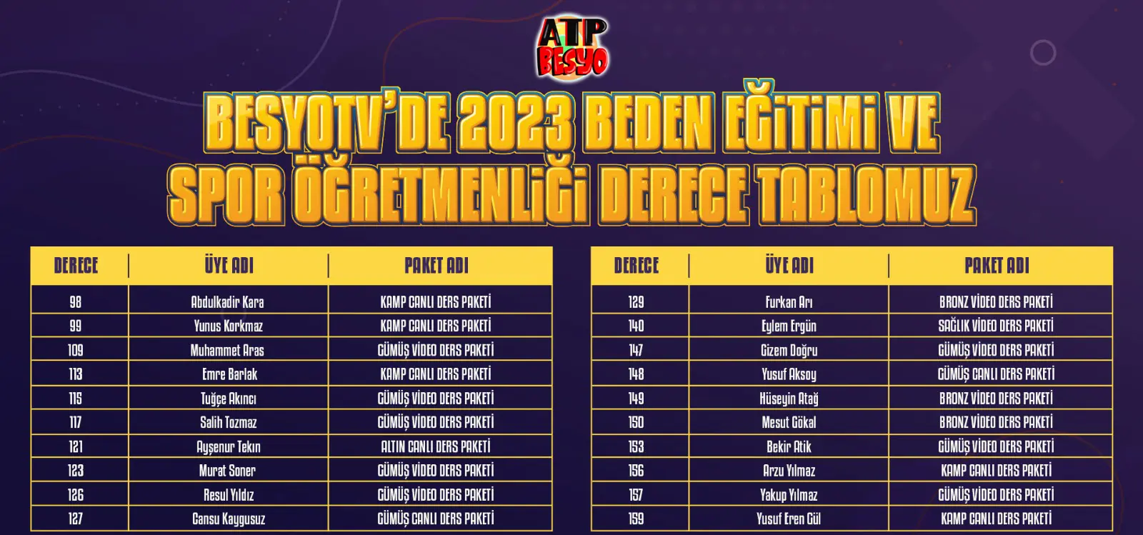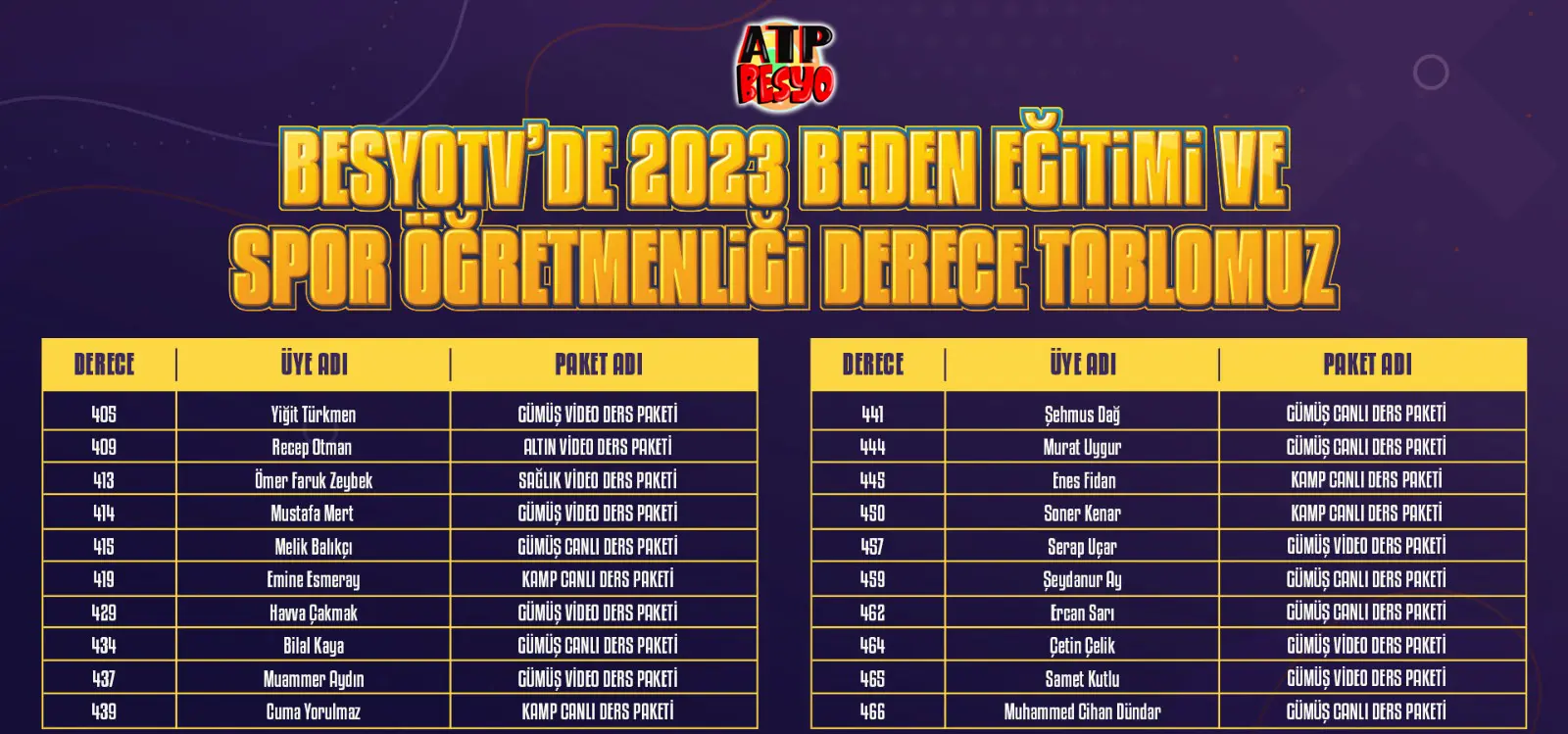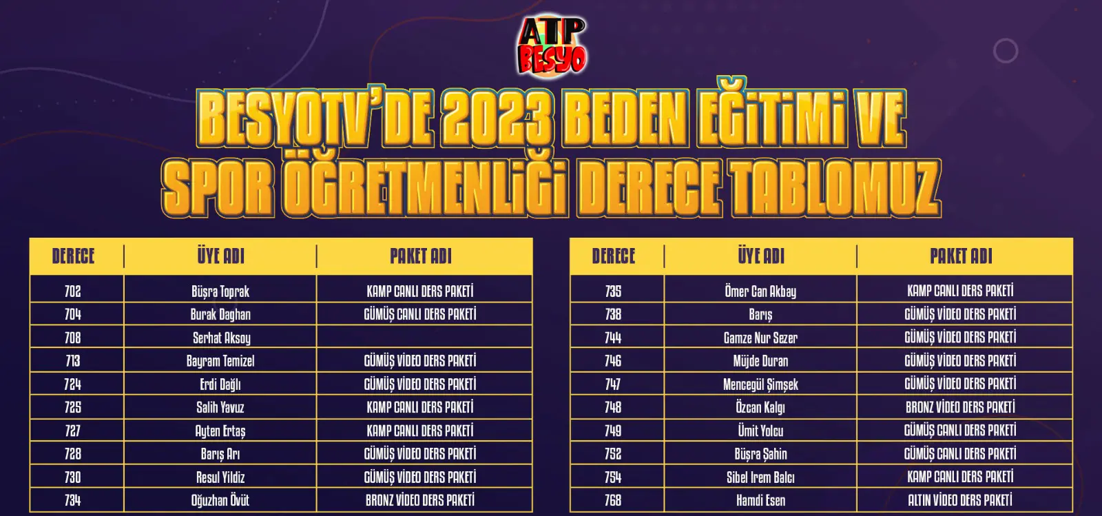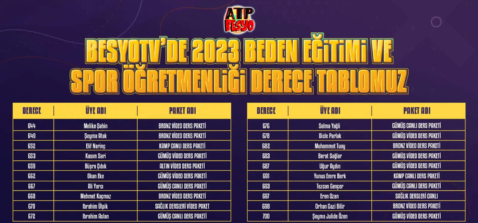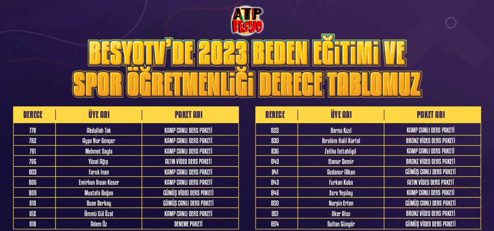 | 2024 | Türkiye 30. | ATP Besyo Üyesi̇ |